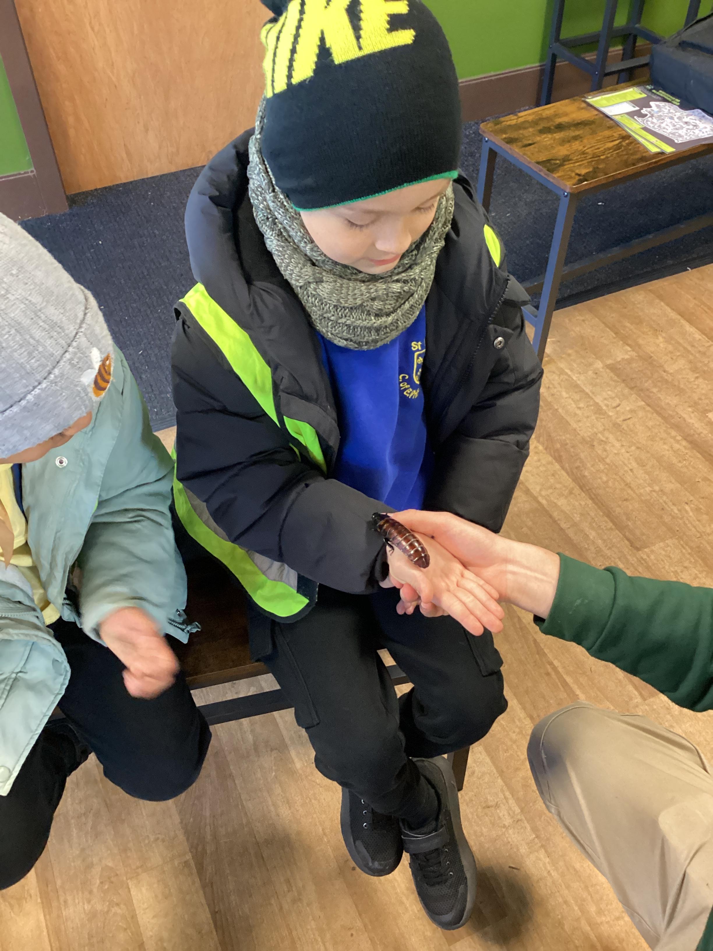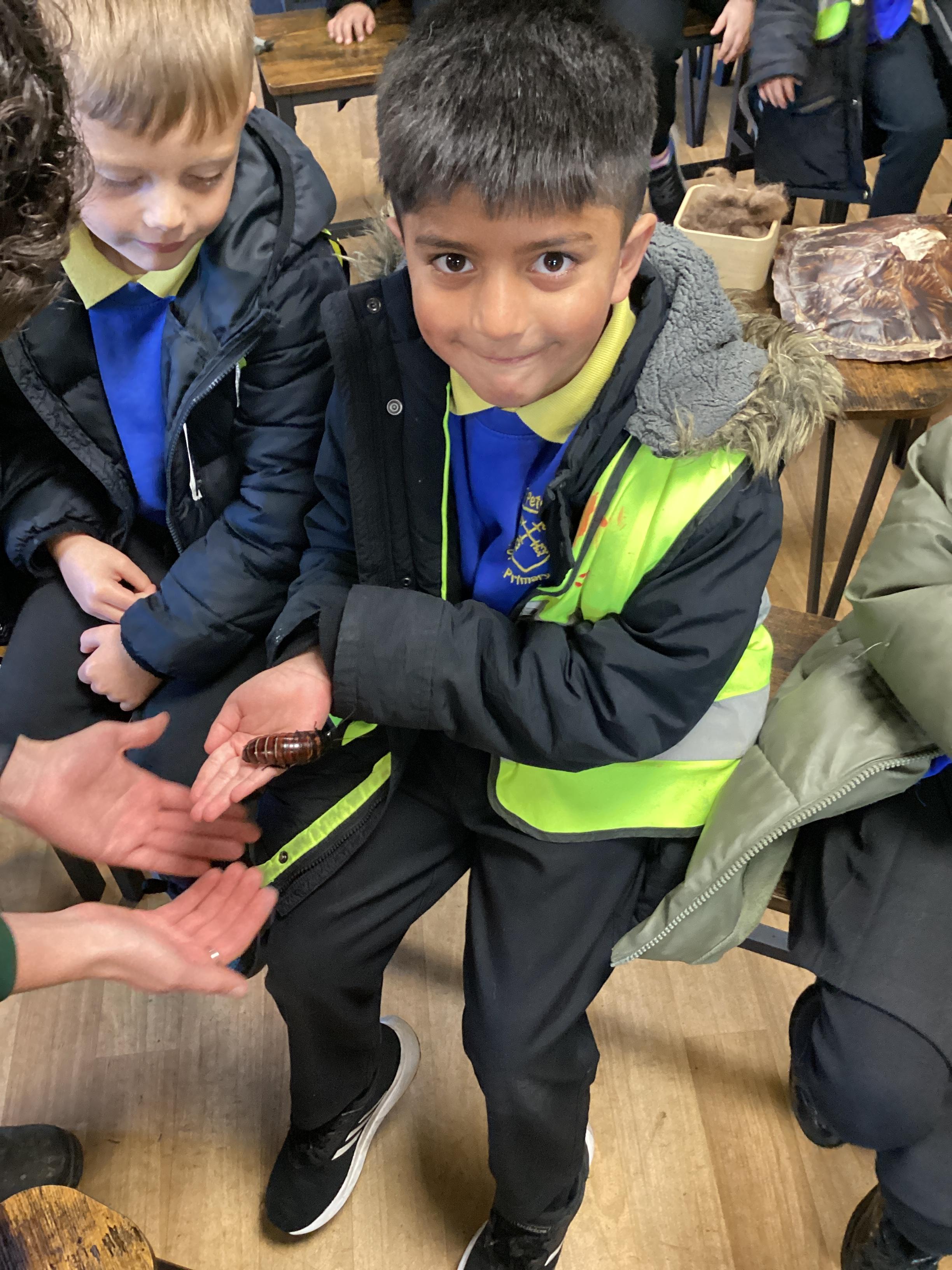 On Monday 11th November, Pink Class visited Blackpool Zoo! Pink class took part in a morning work shop where we learnt all about warm and cold blooded animals. We also looked at some real animal artefacts, such as snake skin, a tortoise shell, peacock feathers and a giraffes hoof. Pink class then got to look, stroke or hold a hissing cockroach!