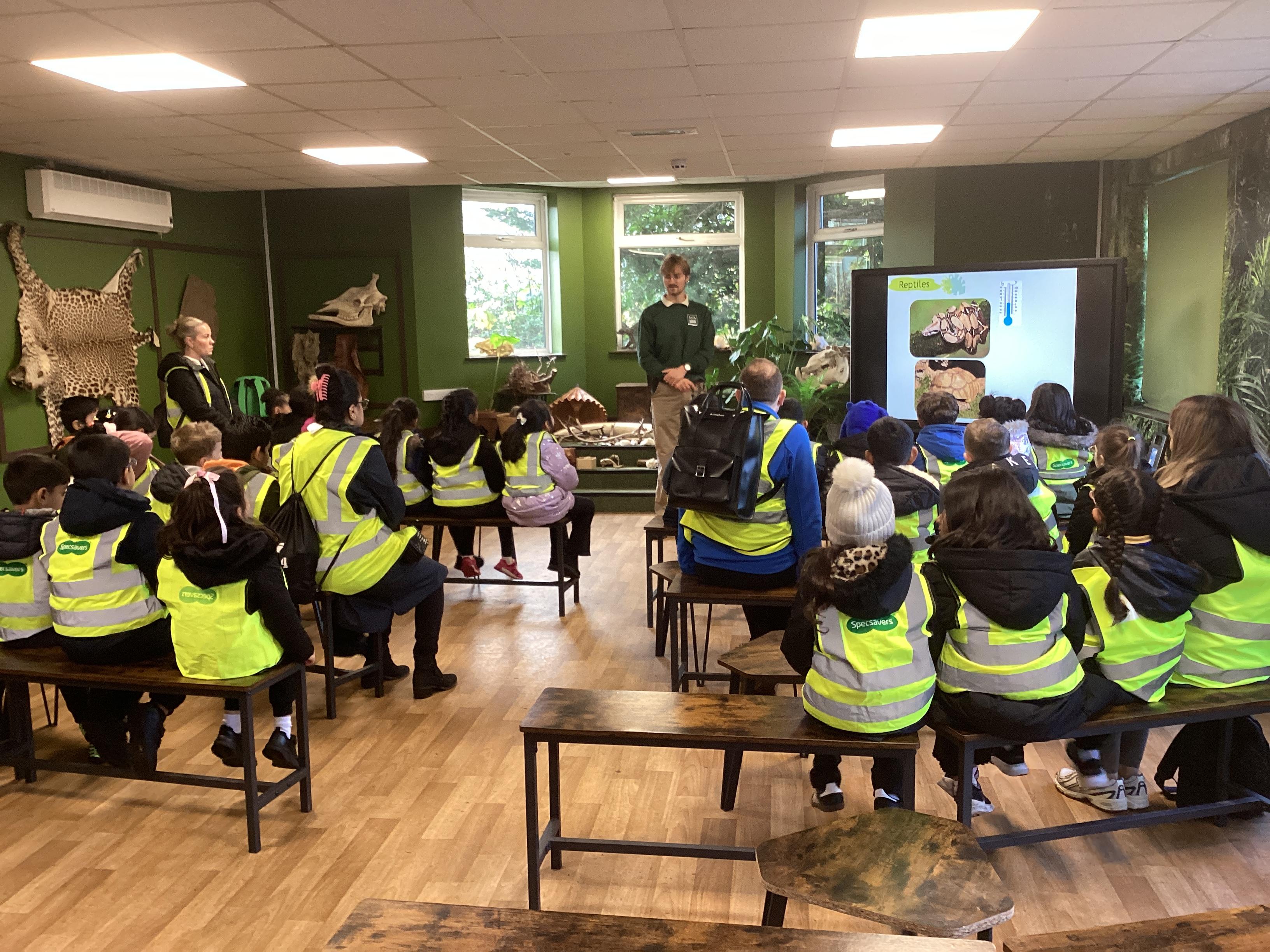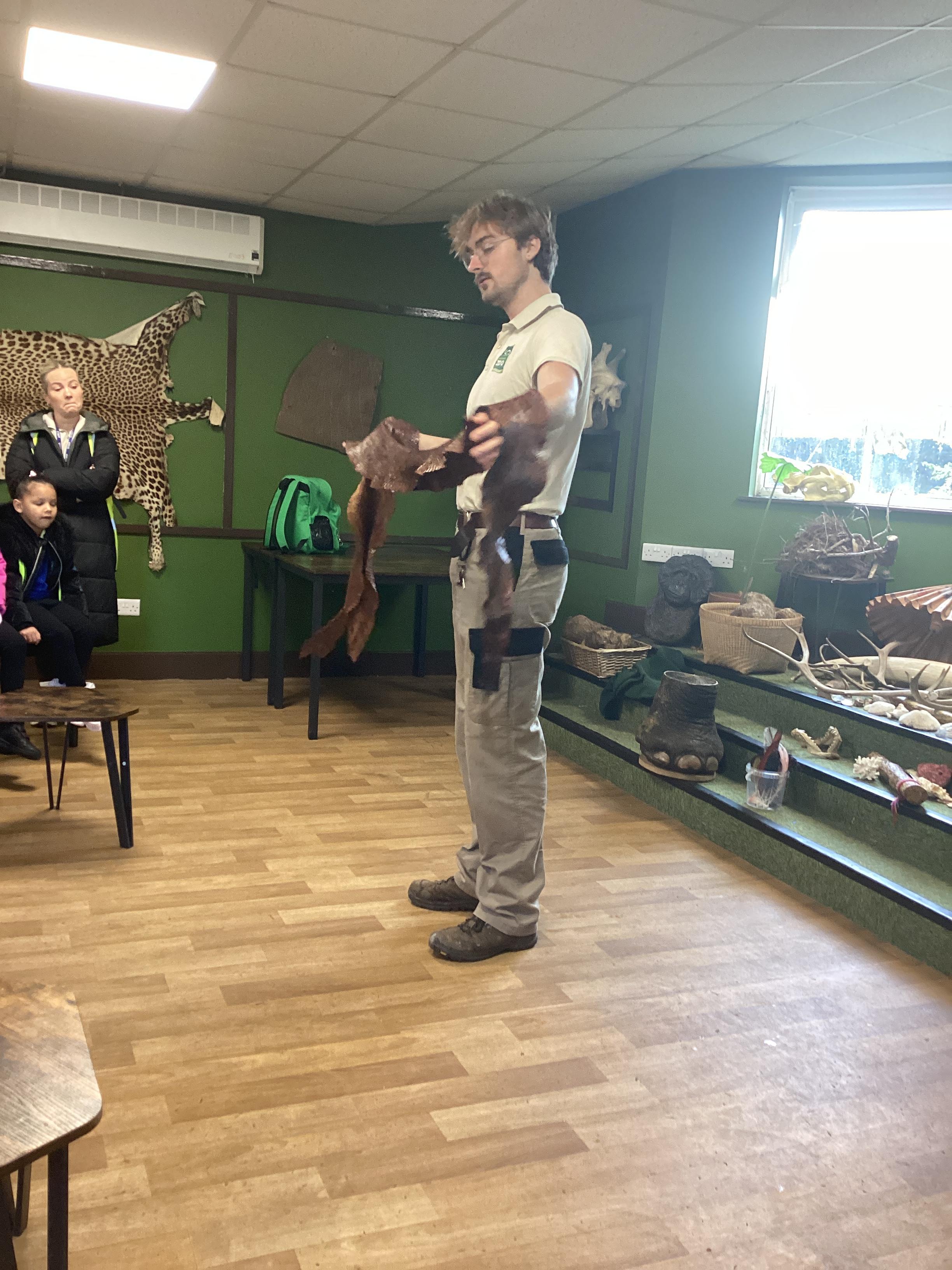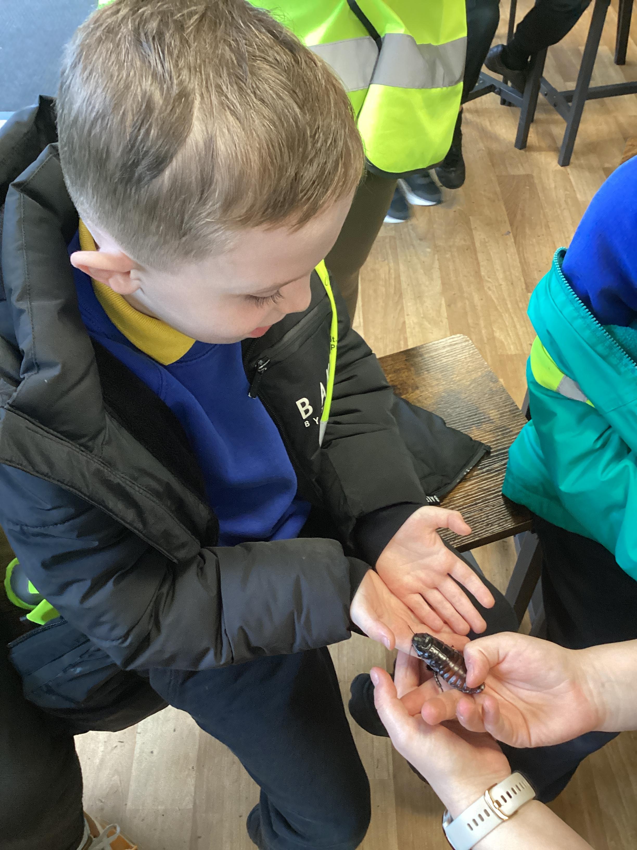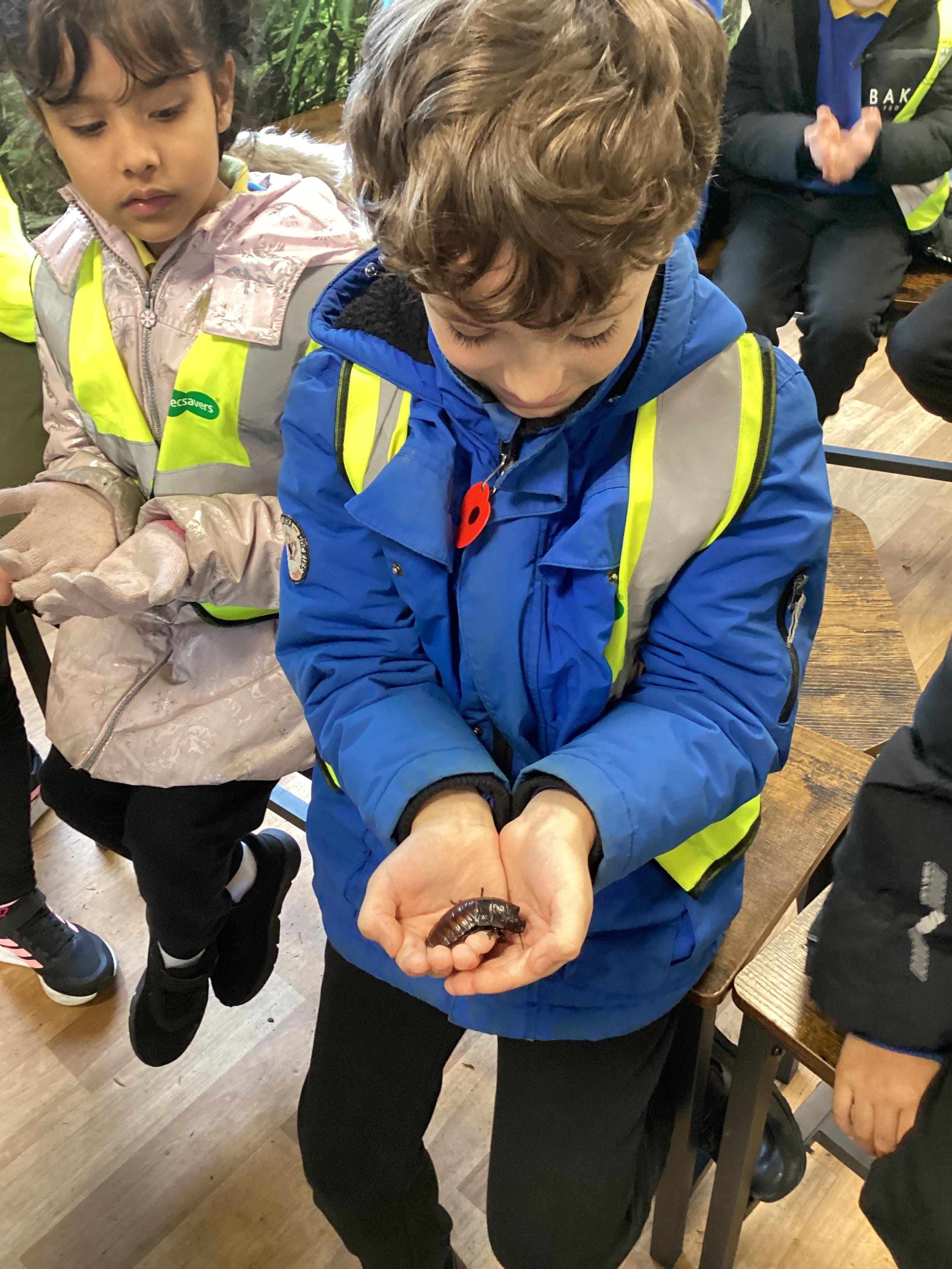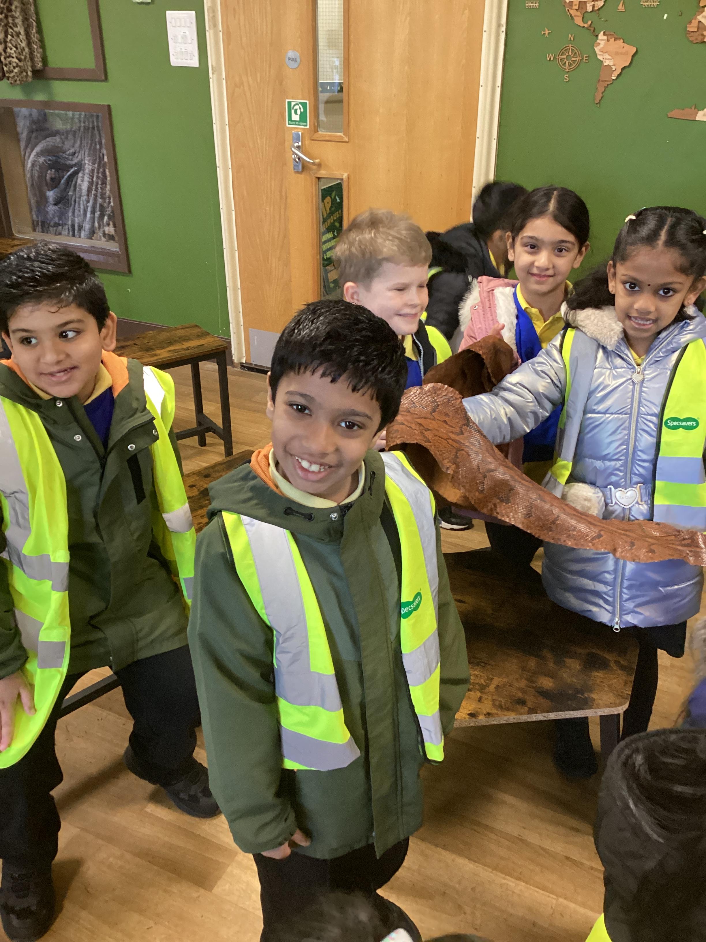 On Monday 10th November, Pink Class enjoyed an exciting visit to Blackpool Zoo. The day began with a morning workshop where the children revisited their Year One learning on animal groups. They then explored different habitats and microhabitats, linking their discoveries to last half term’s science work. The workshop also included the chance to examine real animal artefacts such as snake skin, a tortoise shell, peacock feathers, and even an elephant’s foot. A particular highlight was the opportunity for pupils to look at, touch, or even hold a hissing cockroach!