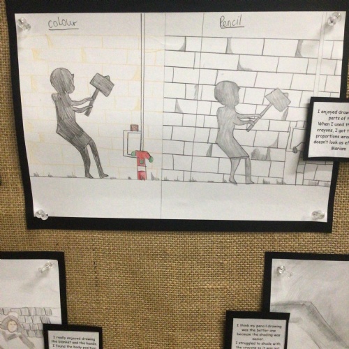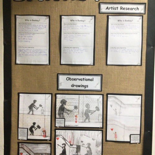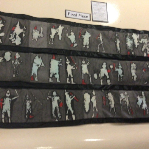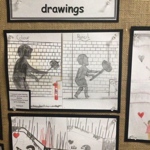 Gold Class looked at the work of graffiti artist, Banksy, from the 2000's then using batik and ink, recreated the Bayeaux Tapestry.
