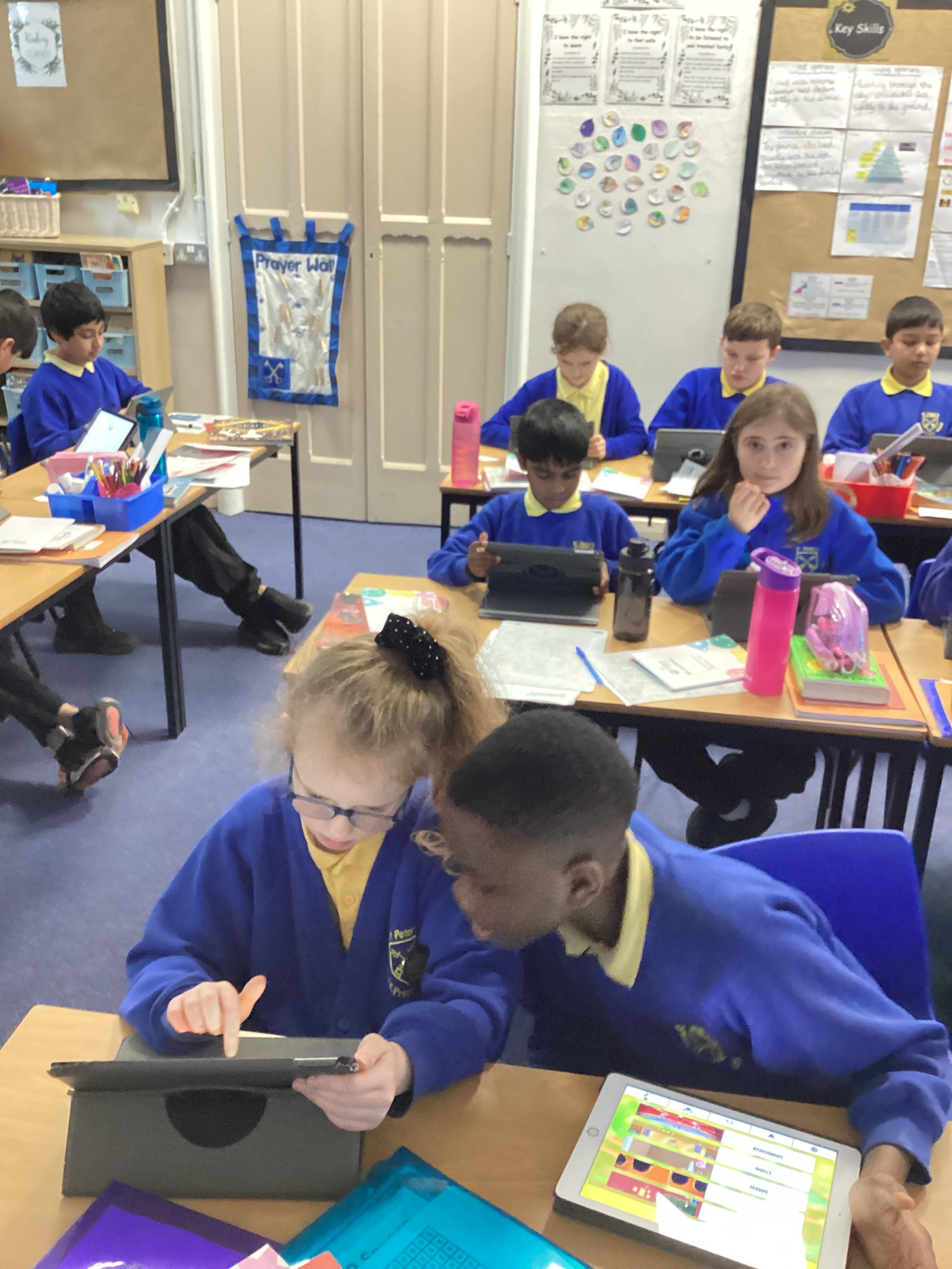 Blue Class consolidated previous learning about fractions of amounts through a crazy relay game called Fraction Frenzy. They also took part in the times table challenge set up through Times Tables Rockstars.