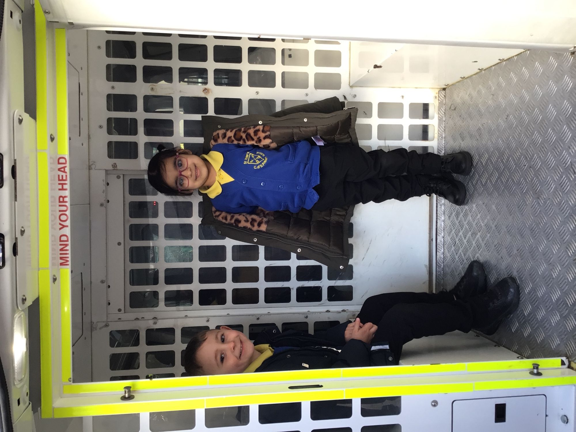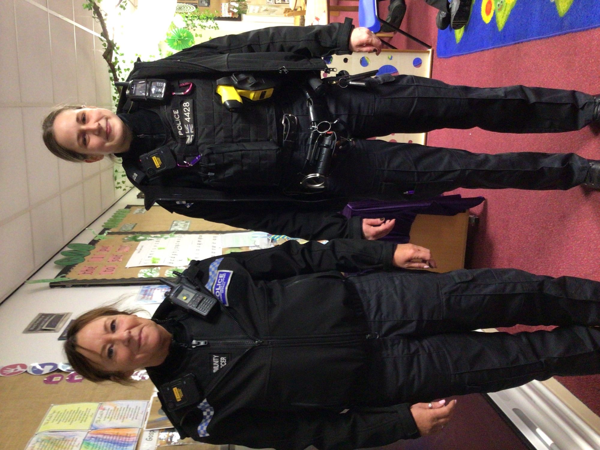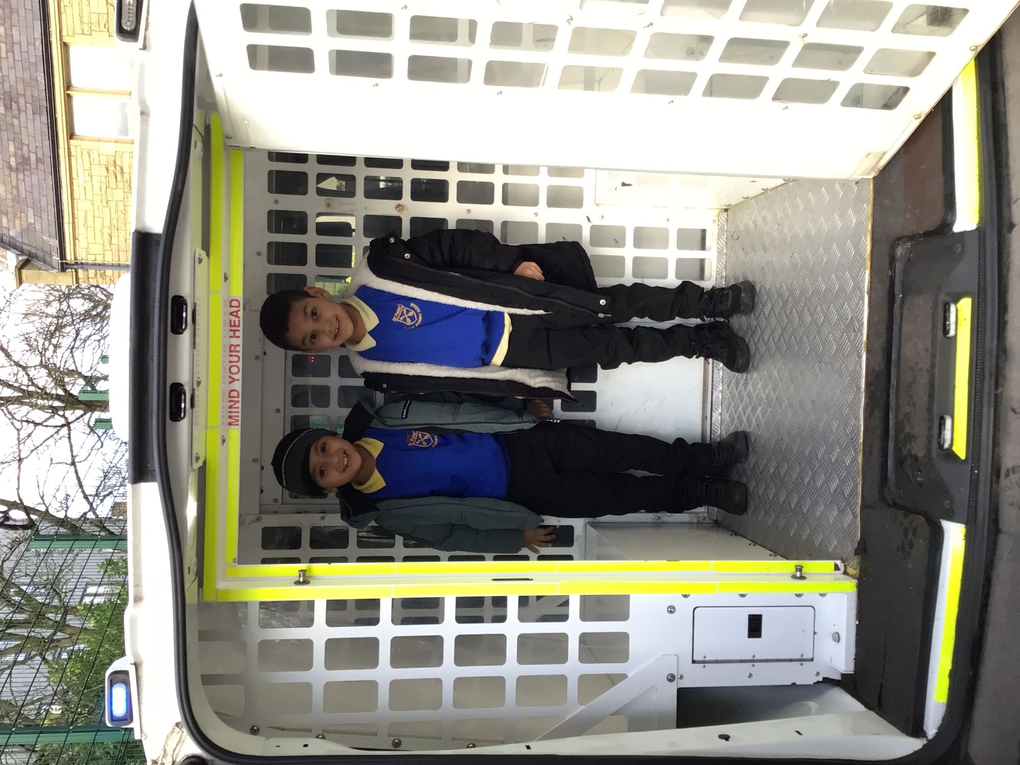 Today we were lucky enough to have a visit from PC Stacey and PCSO Sharon. They spoke to us all about their uniform, how they help in the community and then showed us the Police Van. We all got to have a turn inside the Police Van. They even put the lights on and set off the sirens for us.