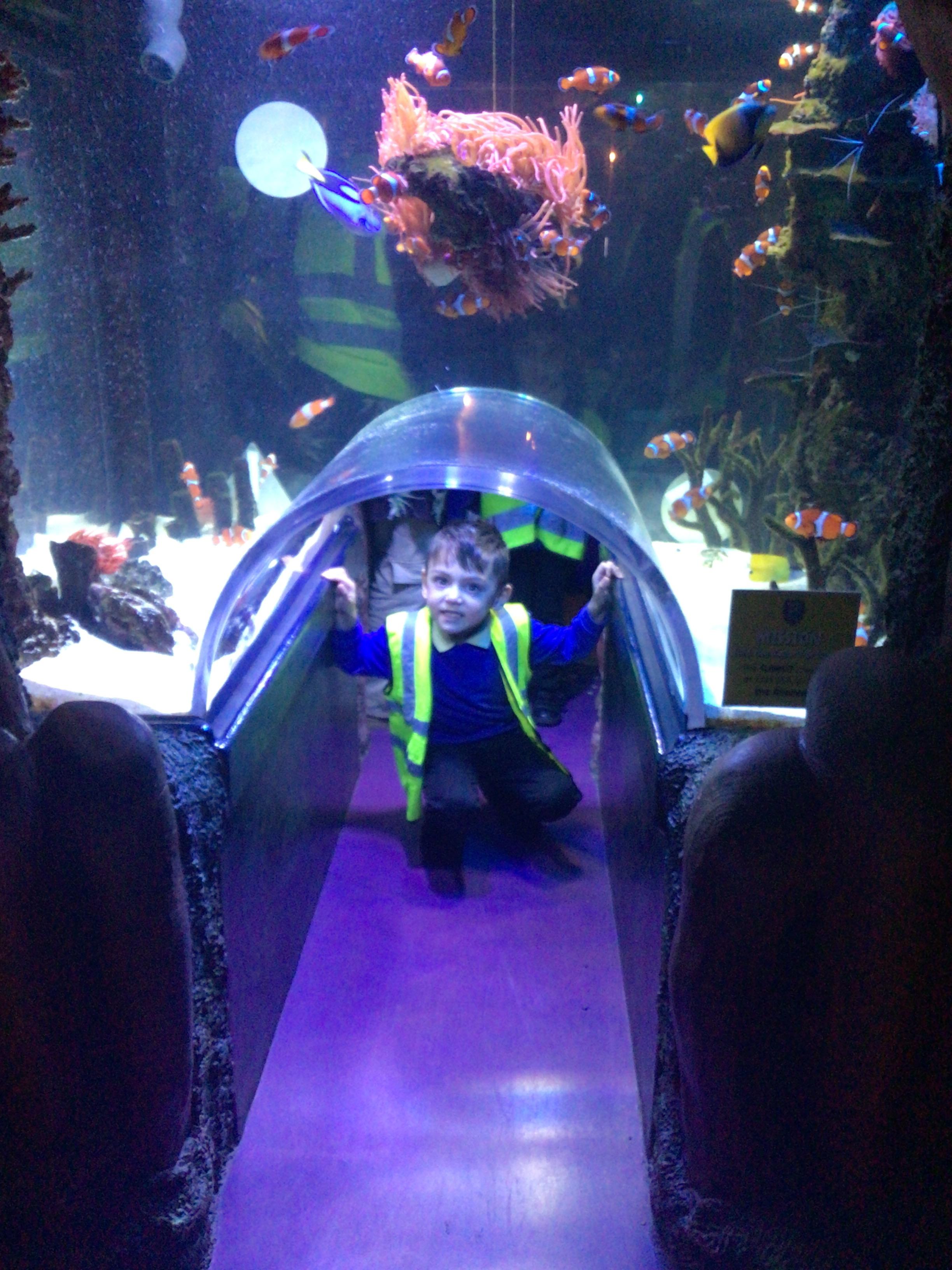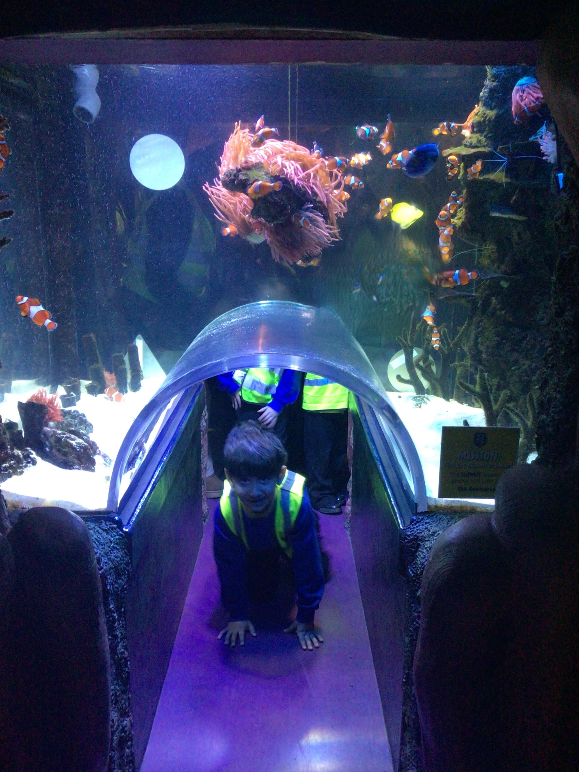 We explored the caves and tunnels, looking at lots of different types of fish. We even saw sharks and turtles...