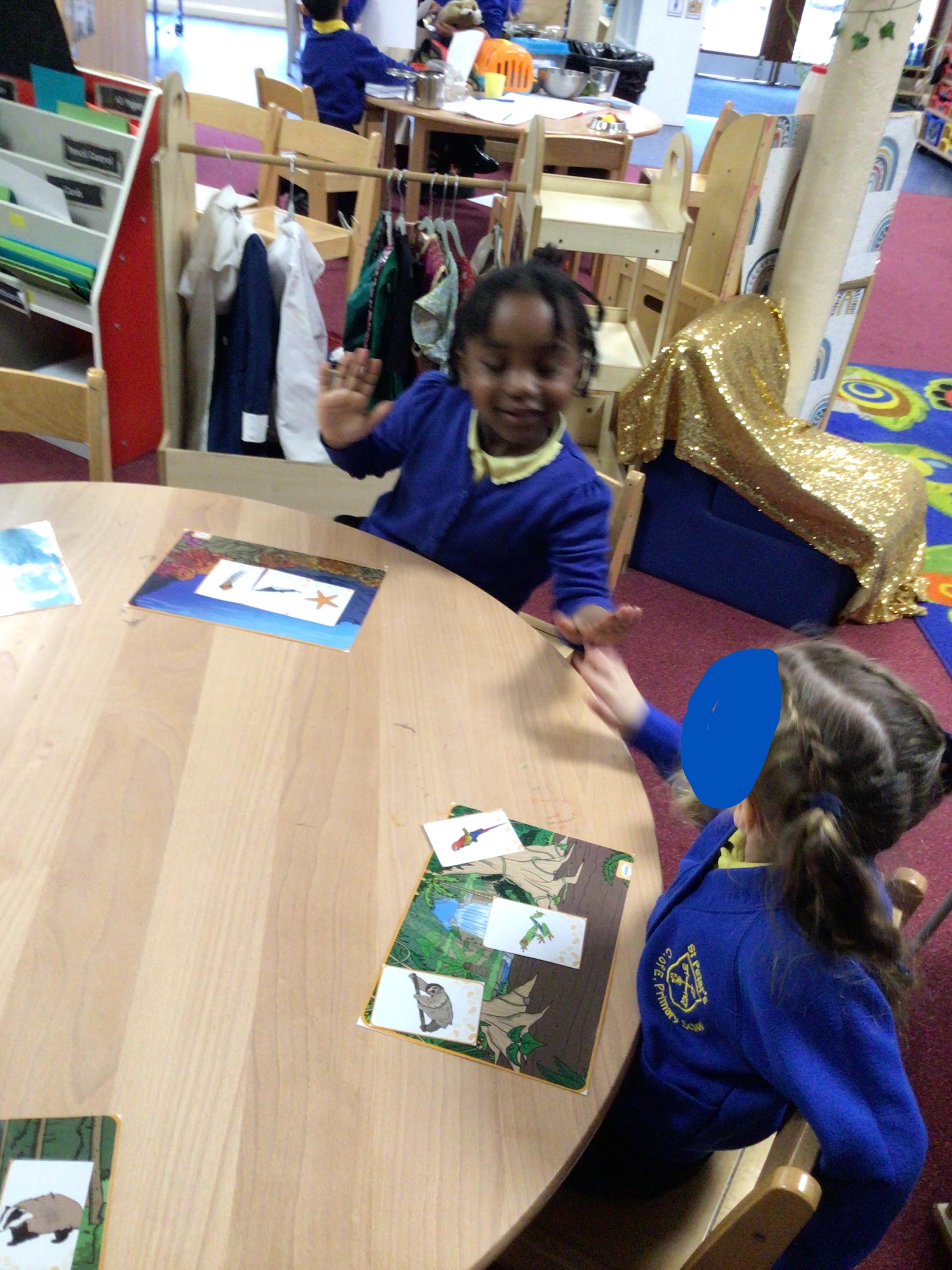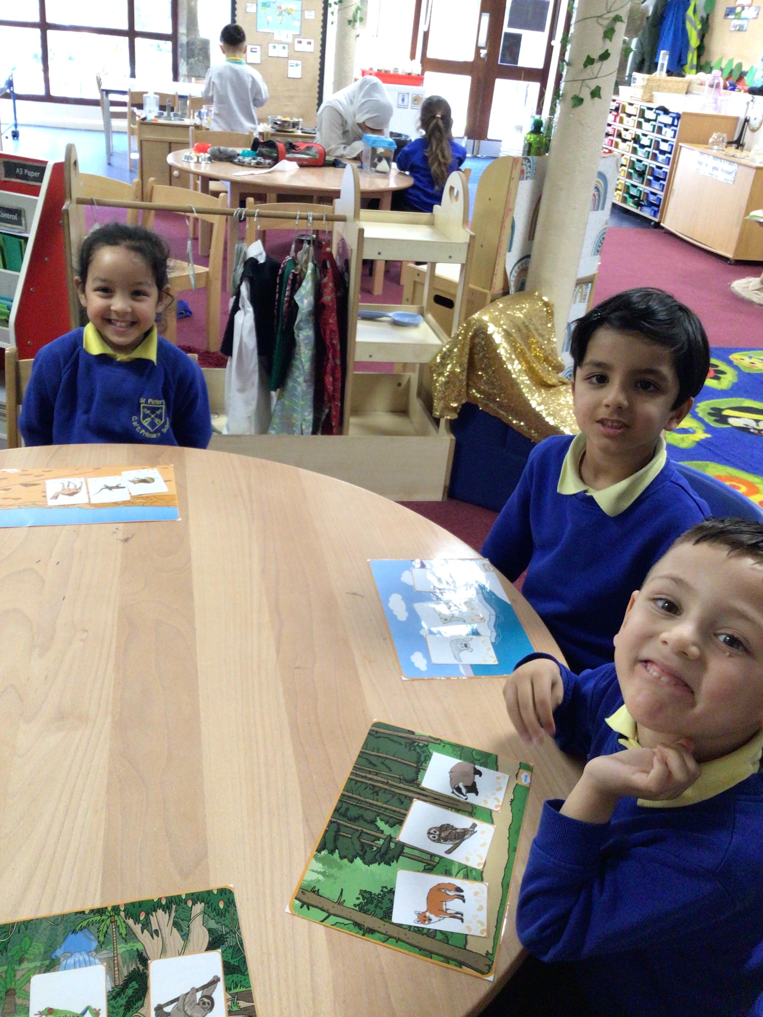 We have been learning about animals this term and where they live. We looked at different pictures of animals and discussed where they all live. We then played a game of snap, matching the animal to the habitat.