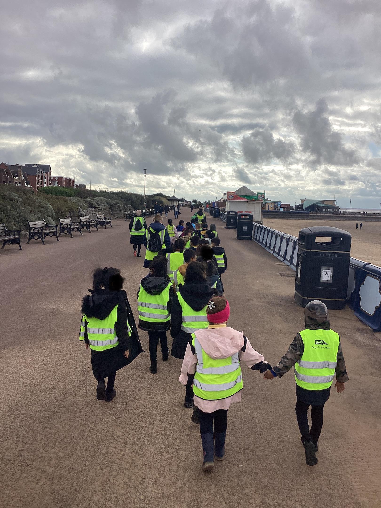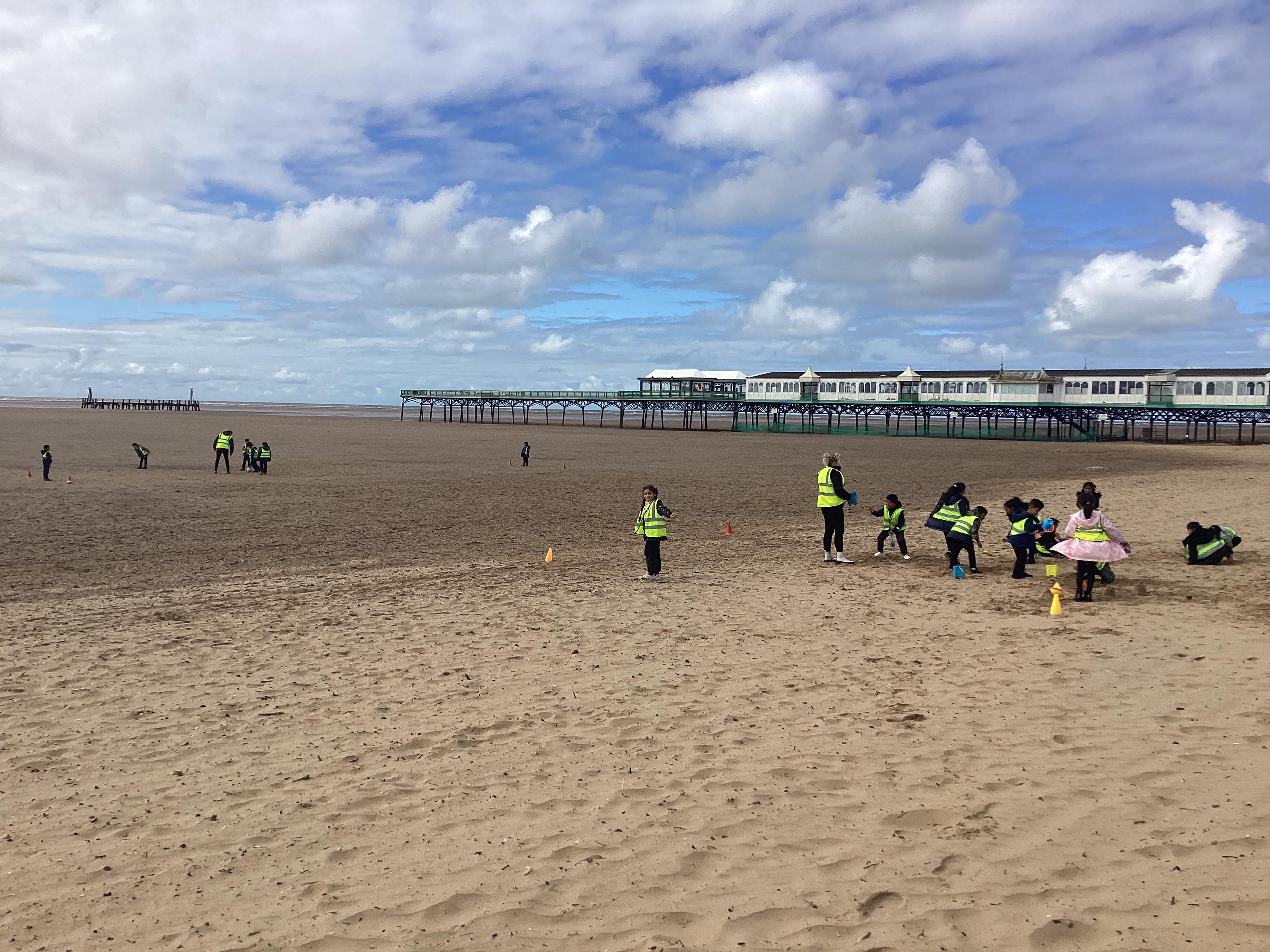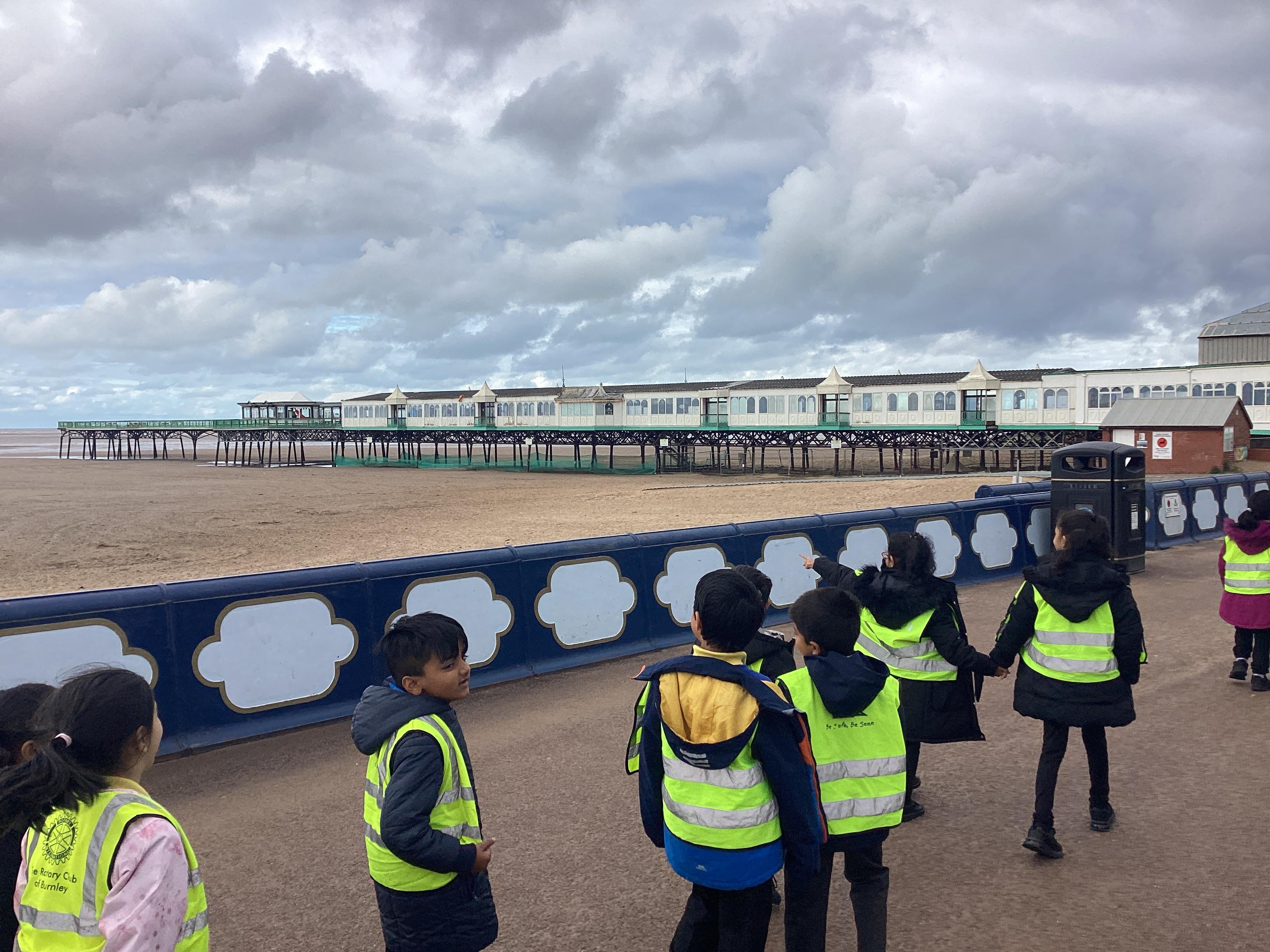 On Tuesday 24th September, Pink class enjoyed a day at Lytham St Anne’s. The trip is linked to our history unit ‘How different were seaside holidays in the past?’. Children enjoyed looking at some of the features of a seaside such as the pier, the promenade, the arcade, ice cream shops and hotels. Children discuss which of these features would’ve been available in the Victorian times and what they might have used instead. After dinner, children enjoyed an ice cream and had lots of fun playing games and building sand castles on the beach.